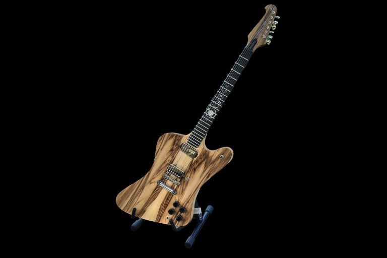 Diese Gitarre wurde genau nach Kundenwunsch angefertigt in Bariton Mensur, erlesene Hölzer, Edelstahl-Frets und Tru-Oil Finish